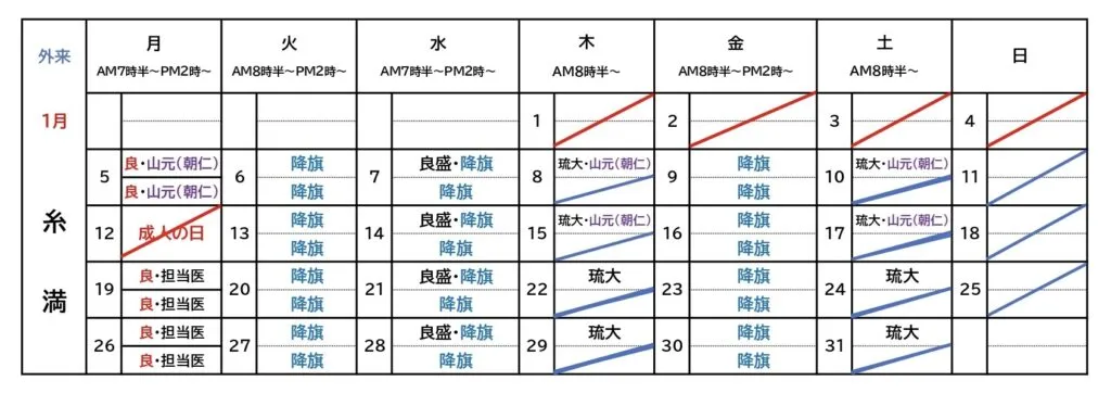- ※会長:安里 良盛先生の診察は、水曜日(午前中)のみです、午前10時30分 受付終了となります。