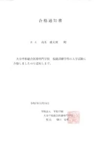 2025年11月8日(土) 大分県の大分平松総合医療専門学校で試験を受け、無事に合格することができました。