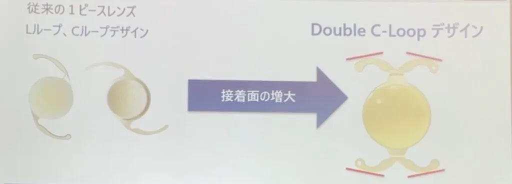 ①Double C-Loopデザインで眼内安定性の向上