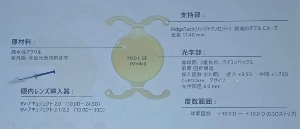 ・眩しさを軽減させるファインビジョンCoPODizeテクノロジーを用いた3焦点レンズ。