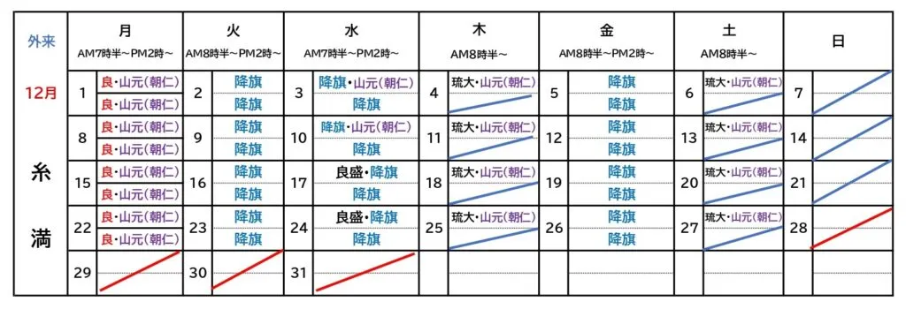 - ※手術日は火曜日となります。学会出席や研修のため、年に数回の不定休診日がございます。