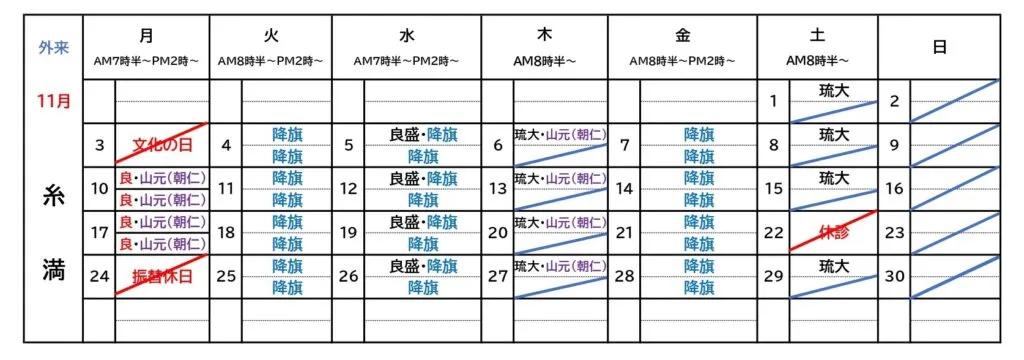 - ※会長:安里 良盛先生の診察は、水曜日(午前中)のみです、午前10時30分 受付終了となります。