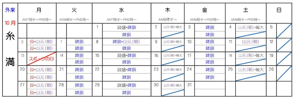 月 | 07:00~16:00 | 07:30~ | 14:00~ |