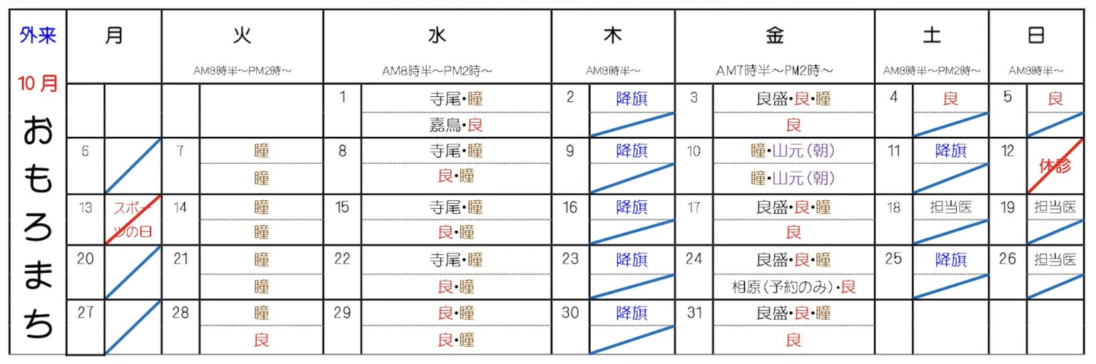 - ※令和04年03月より、月曜日祝日の前日の日曜日は休診となります。