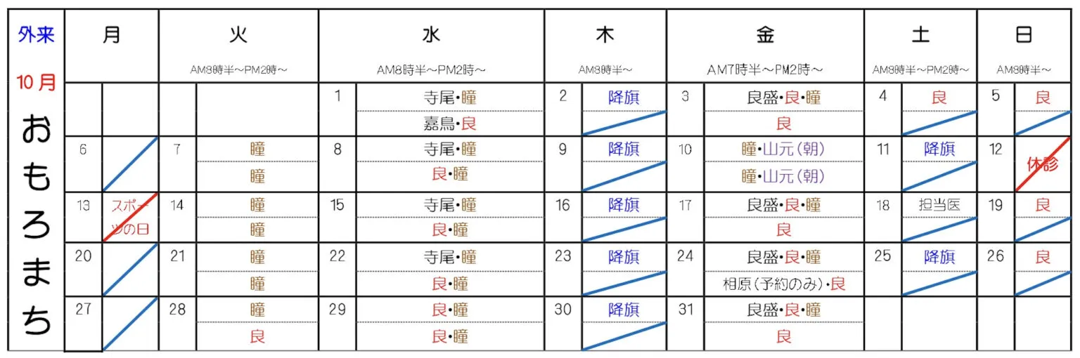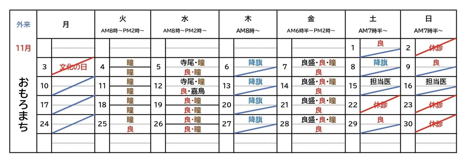 - ※休診日は毎週月曜日・木曜日の午後・土曜日の午後・日曜日の午後・祝日・年末年始・第5日曜日です。